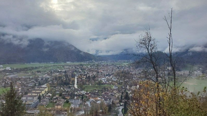 Day 5 – This morning we enjoyed a walking tour of Interlaken. We walked along the riverbank to the rail station to ride the cogwheel up to Harder Kulm. It was a foggy morning so was unable to see the mountains surrounding the Interlaken valley. But we walked around the area at the top where there is a small restaurant with amazing views, at least that is what we were told! We grabbed some coffee and Glühwein for the trip back down the mountain. As we walked towards the rail station in Interlaken we watched several paragliders land in the park and did a little shopping along the way.